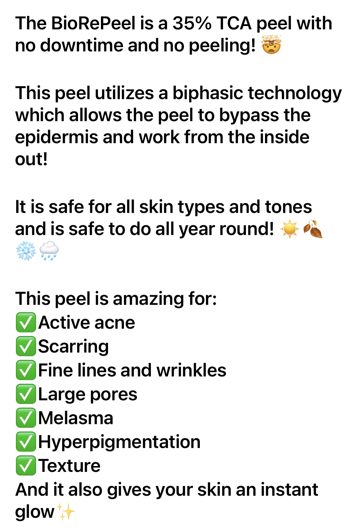 The most advanced “no downtime” peel on the market. With a delivery system that drives this peel to the deepest layers of the skin, this peel works to revamp the skin from the inside out. Best results are achieved in a series of 4 administered two weeks apart.